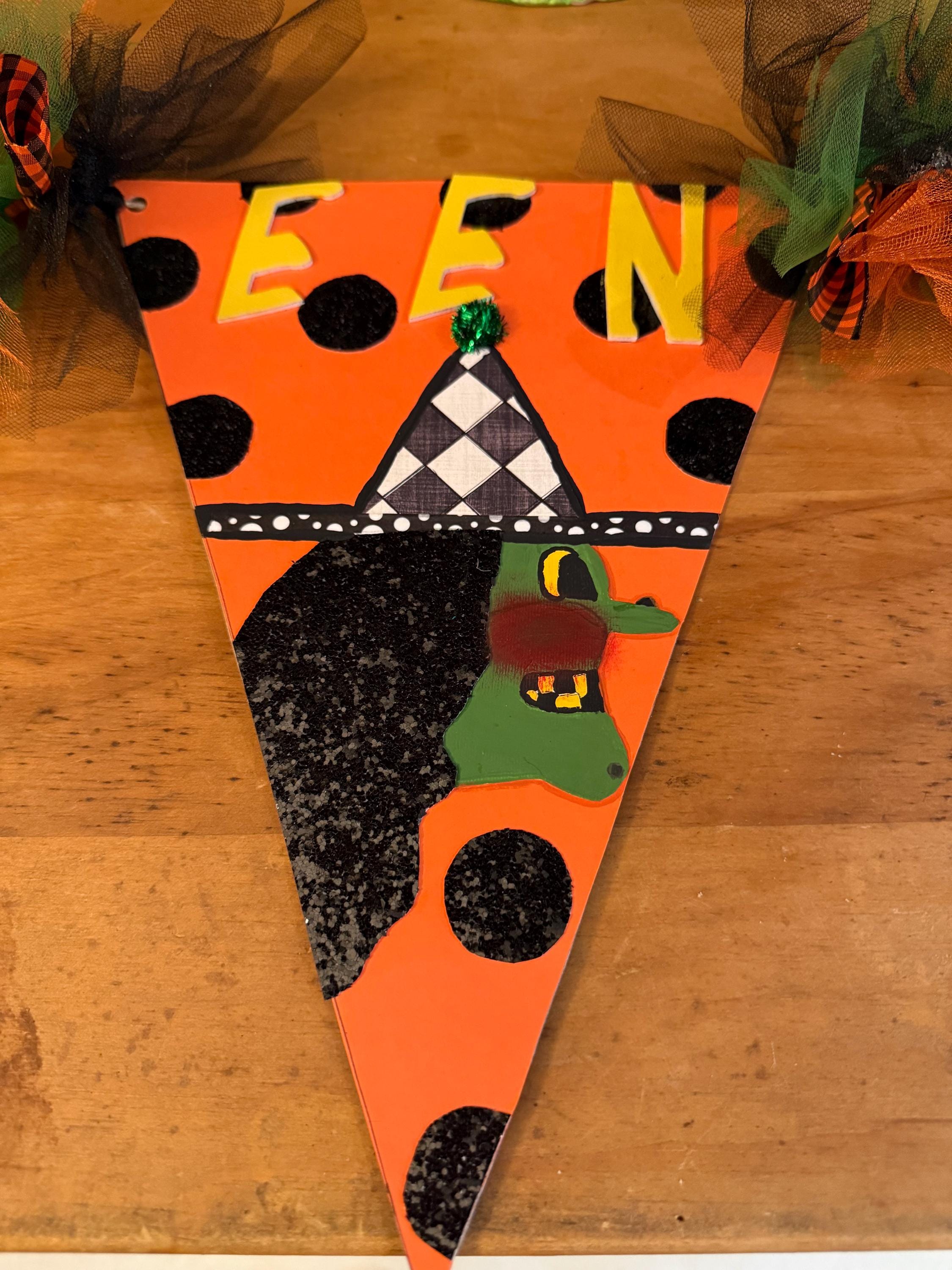 Halloween Garland, $4.00 Digital download, receive 3 pennants a witch, cat, pumpkin.