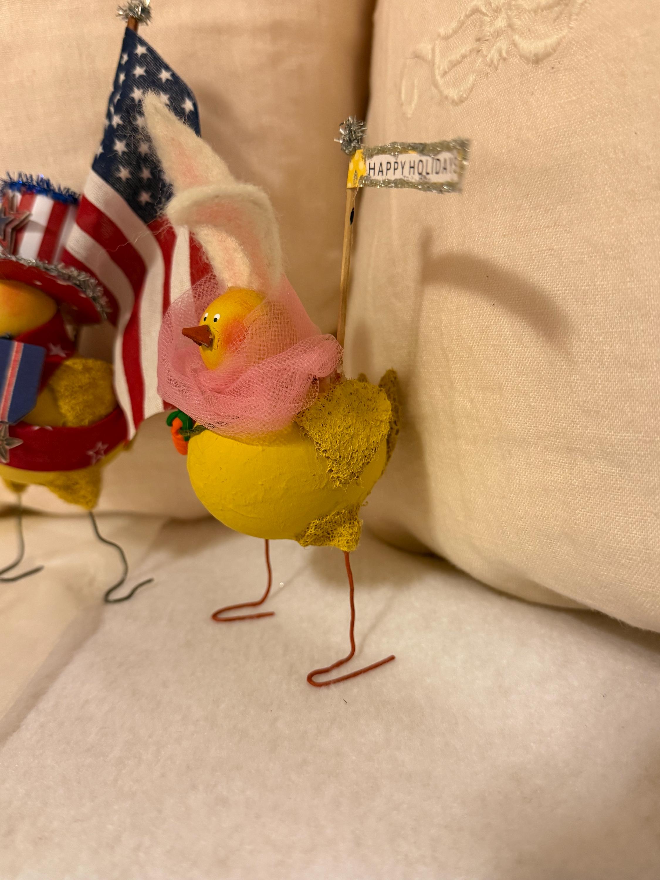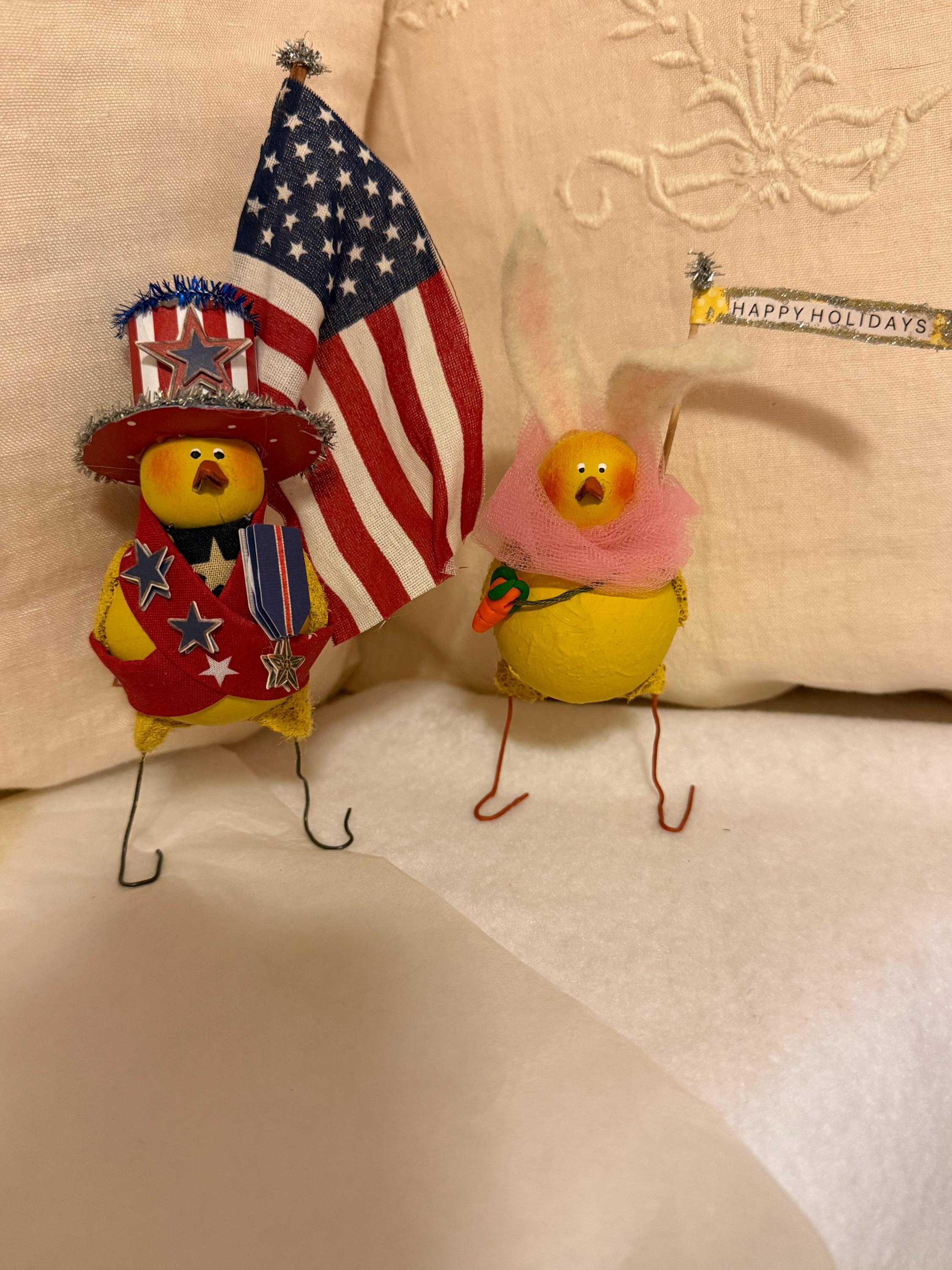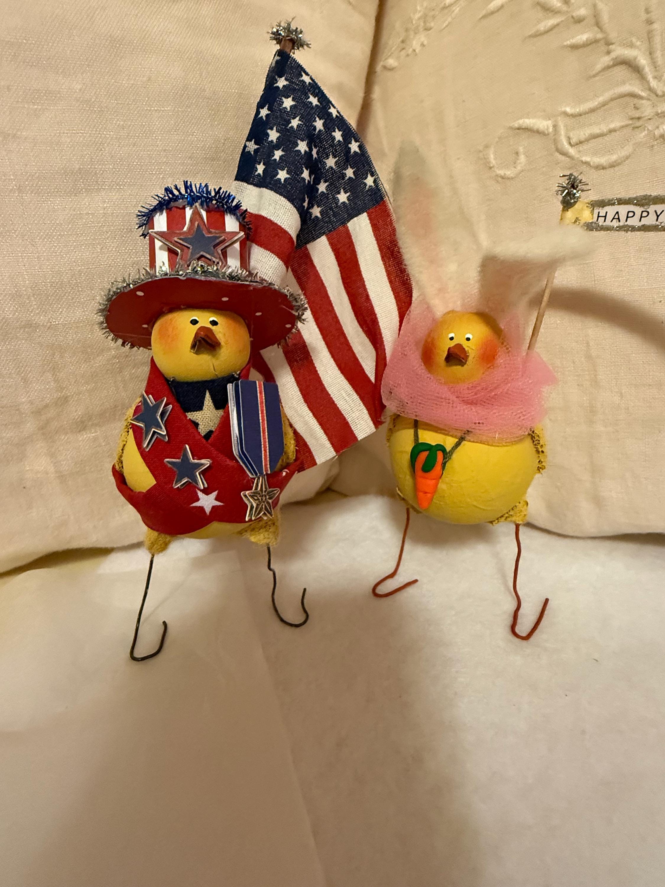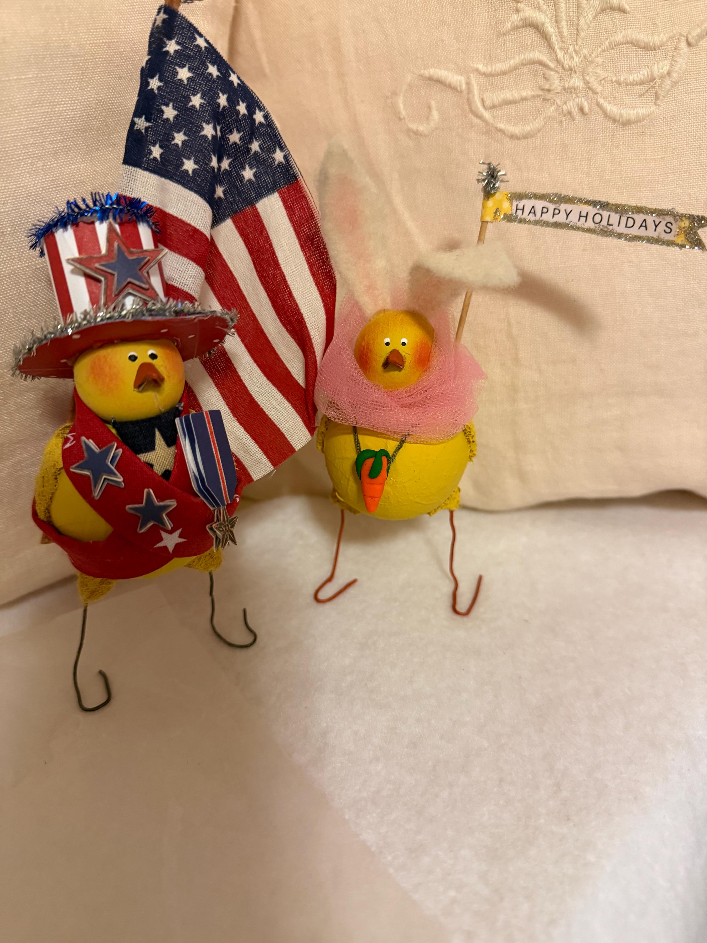 Holiday Peeps Pattern, one peep thinks he's Paul Revere and the other an Easter Bunny. Both measure 5"tall x 2" 1/2 wide, this is a very easy pattern to make with no sewing.